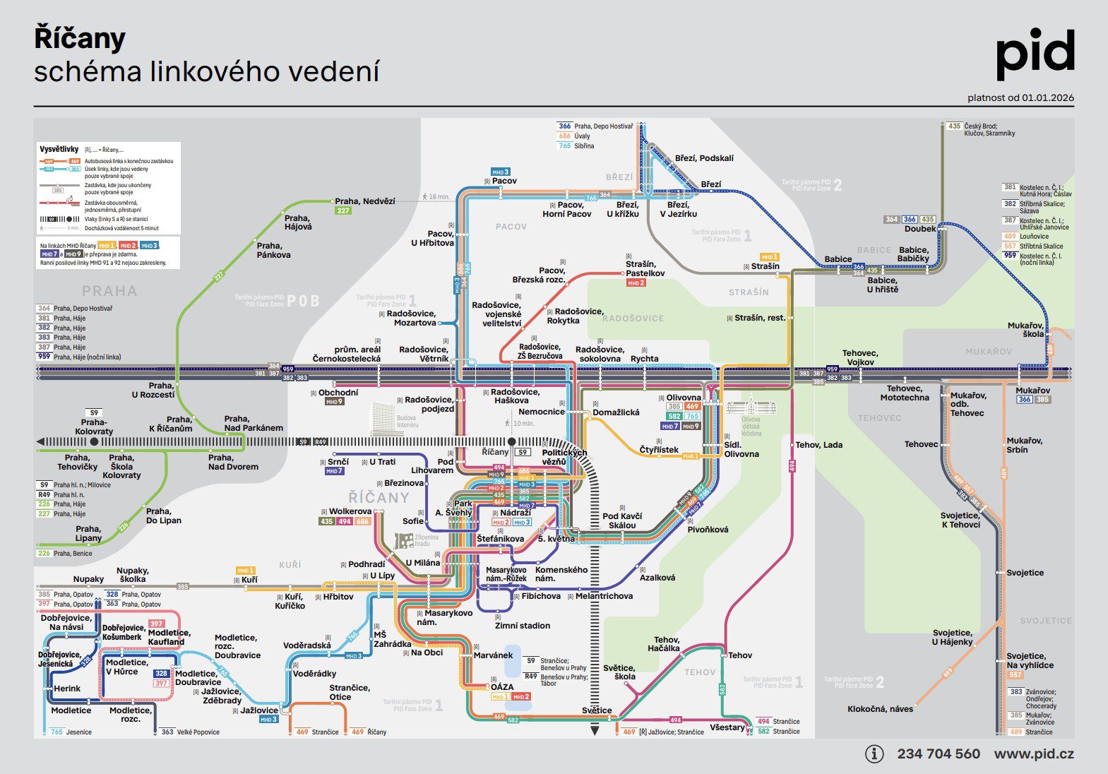 Podívejte se na nejnovější schéma linek PID a městských autobusů v Říčanech.