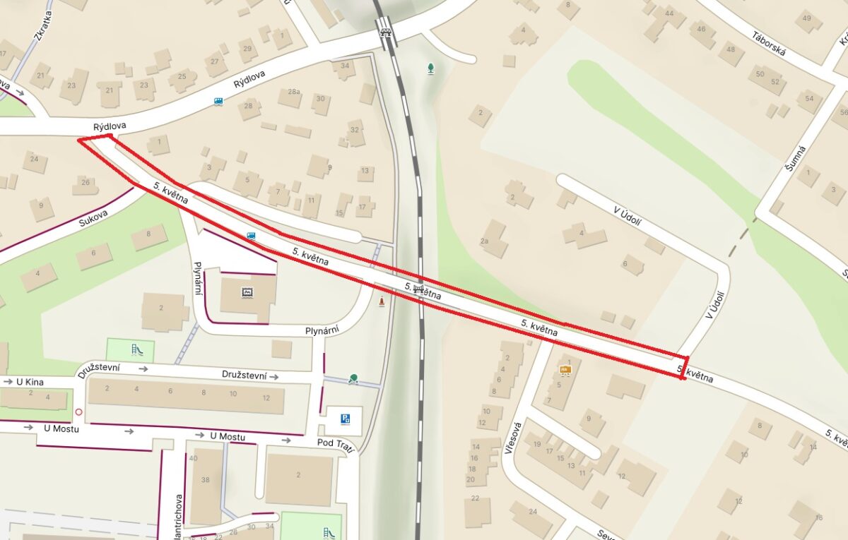 - V pondělí 9. března zahájení opravy ulice 5. května – úsek od ul. V Údolí po ul. Rýdlova. Předpokládané dokončení: 15. března.