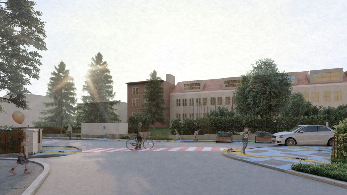 Úsek u školy se na několik týdnů promění pomocí jednoduchých a dočasných zásahů. Přibude drobný mobiliář, mobilní zeleň, nový přechod pro chodce u vstupu pro první ročník a rozšíření prostoru před školou pomocí barevné malby na části silnice a chodníku. Zrušení šesti podélných parkovacích stání umožní vytvořit otevřenější a kvalitněji uspořádaný prostor před školou. Navržené úpravy pomohou lépe vymezit jeho podobu, zpomalit projíždějící auta a vytvořit příjemnější místo pro děti, rodiče i rezidenty.