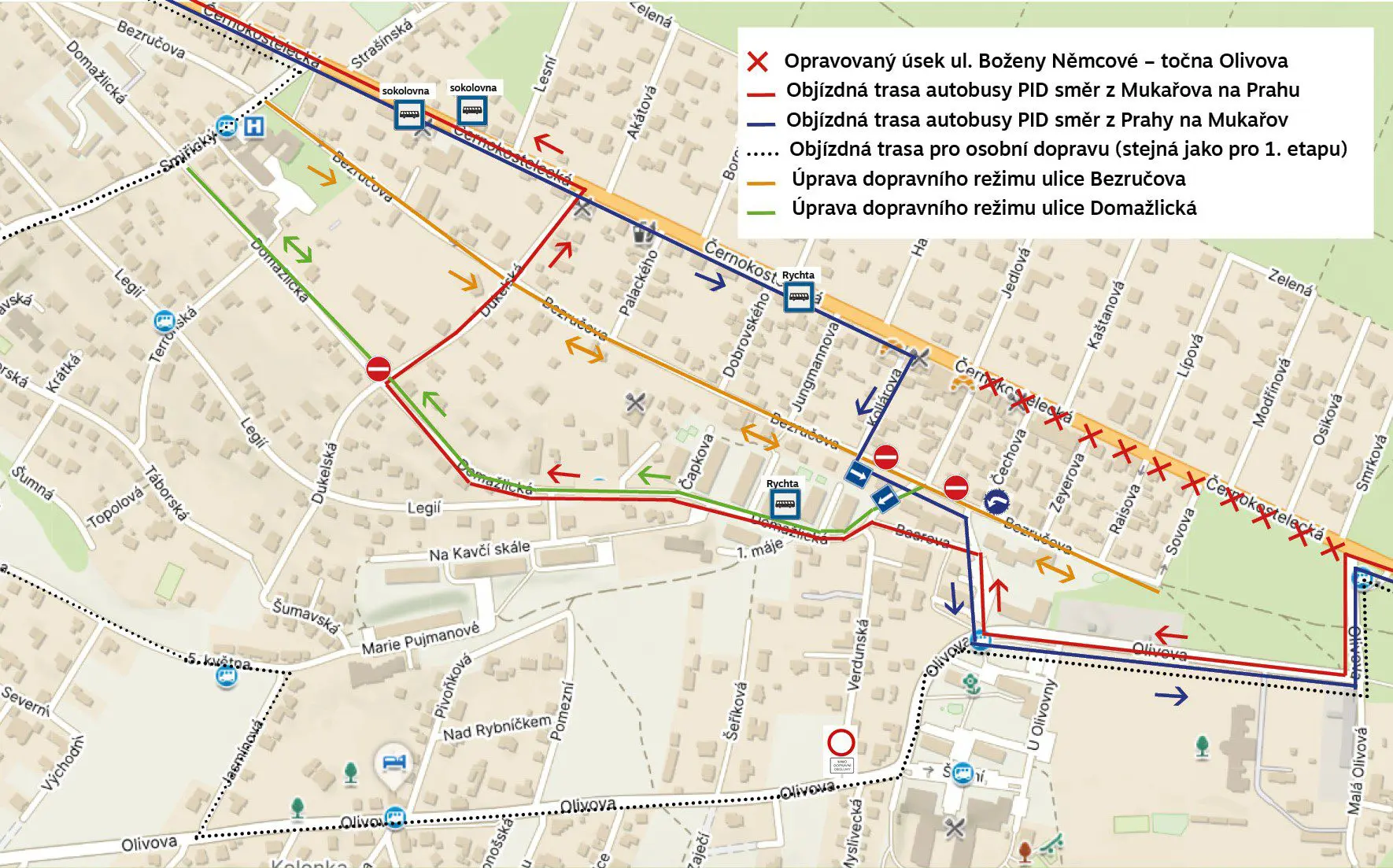 Ředitelství silnic a dálnic zahájí 1. března 2025 druhou etapu rekonstrukce silnice Černokostelecká v úseku ulice Boženy Němcové–ulice Olivova.