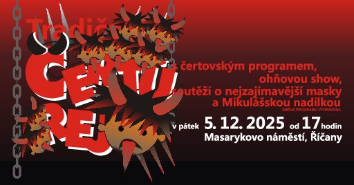 Čeká vás čertovský program, ohňová show, soutěž o nejlepší kostým a mikulášská nadílka. Od 17:00