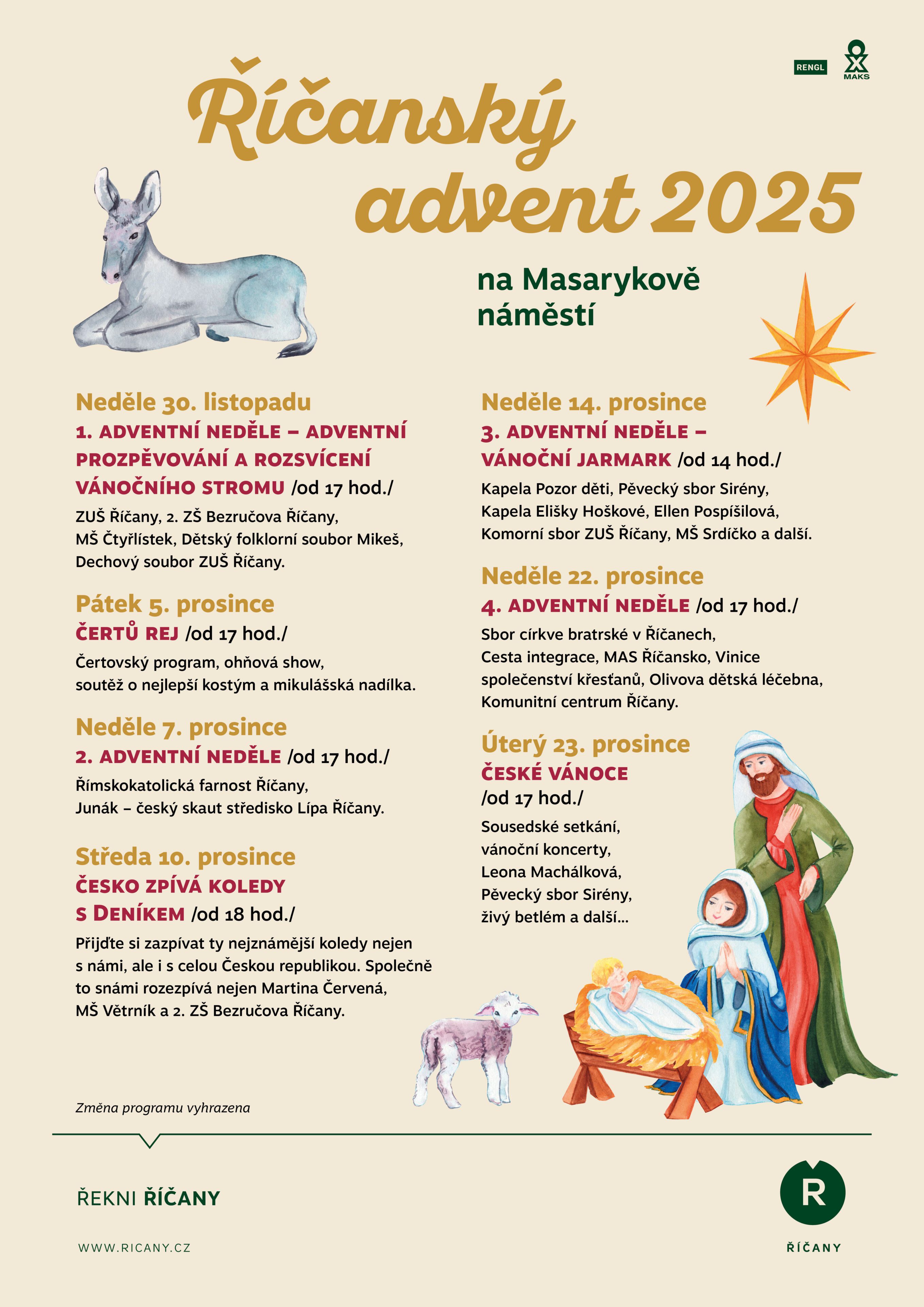 Program připravili: Římskokatolická farnost Říčany, Junák – český skaut středisko Lípa Říčany. Od 17:00