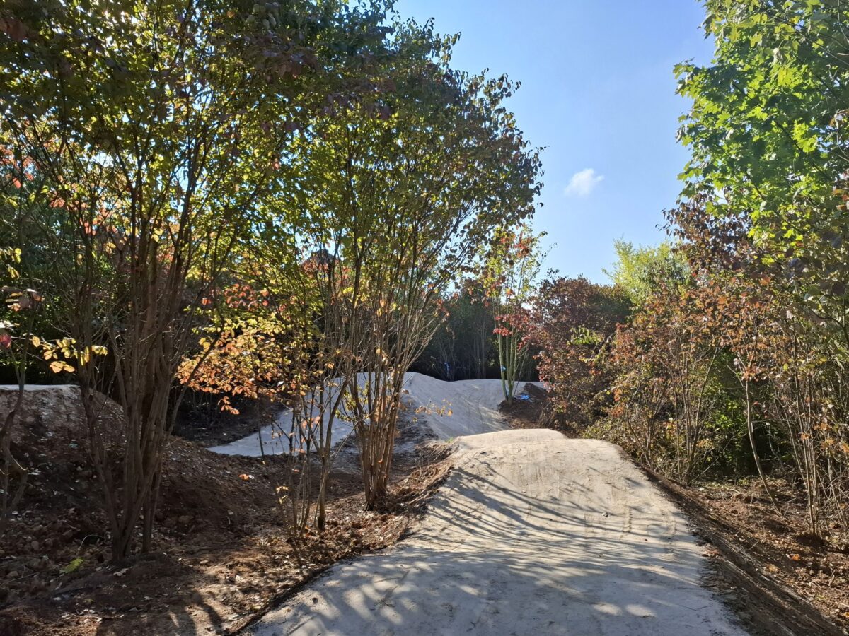 Na ploše vznikly dvě trasy různé obtížnosti s povrchem z vápence, doplněné na startu a v cíli o dřevěné prvky. Trail je veden mezi keři, které tlumí hluk a zajišťují přirozené stínění, v okolí budou vysazeny i nové stromy. Trať je určena pro široké spektrum jezdců – od začátečníků po zkušené bikery.