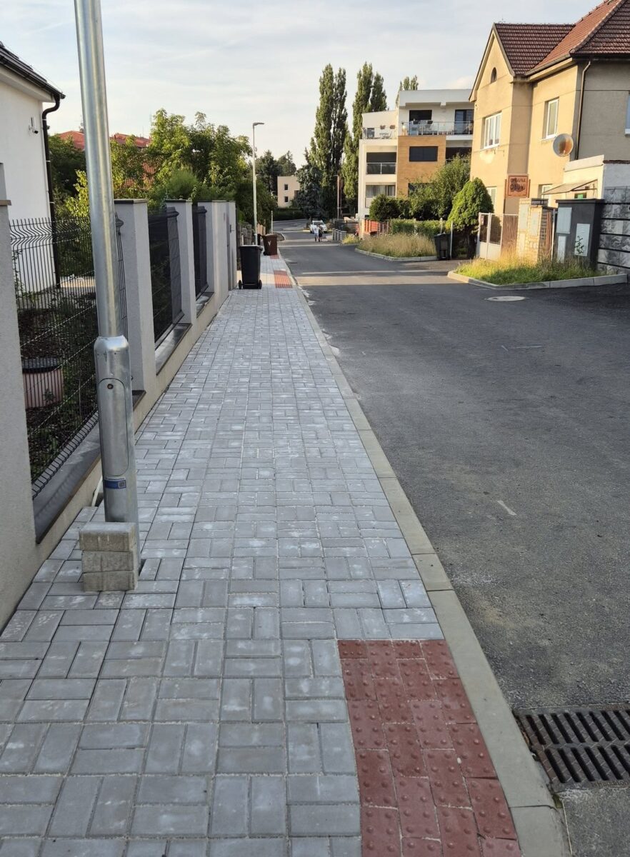 Dokončili jsme opravu chodníku v ulici Žižkova v celkové délce 220 metrů (úsek 17. listopadu–Přemyslova). Opravě chodníku předcházela pokládka optických sítí. Nechtěli jsme chodník pouze záplatovat, a proto jsme jej kompletně zrekonstruovali. Chodník nyní má novou zámkovou dlažbu i obrubníky. S majiteli přilehlých nemovitostí jsme projednali zřízení nájezdů. Upraveny byly nájezdy do areálu školy Sofie a k parkovací ploše školy Sunny Kids. Podél celého chodníku (u plotů) byly použity sadové obruby, které umožnily sjednocení jeho šířky. Chodník byl navíc prodloužen až po hranici s křižovatkou ulice 17. listopadu. Celková cena stavby činí 1 327 147,74 Kč včetně DPH.