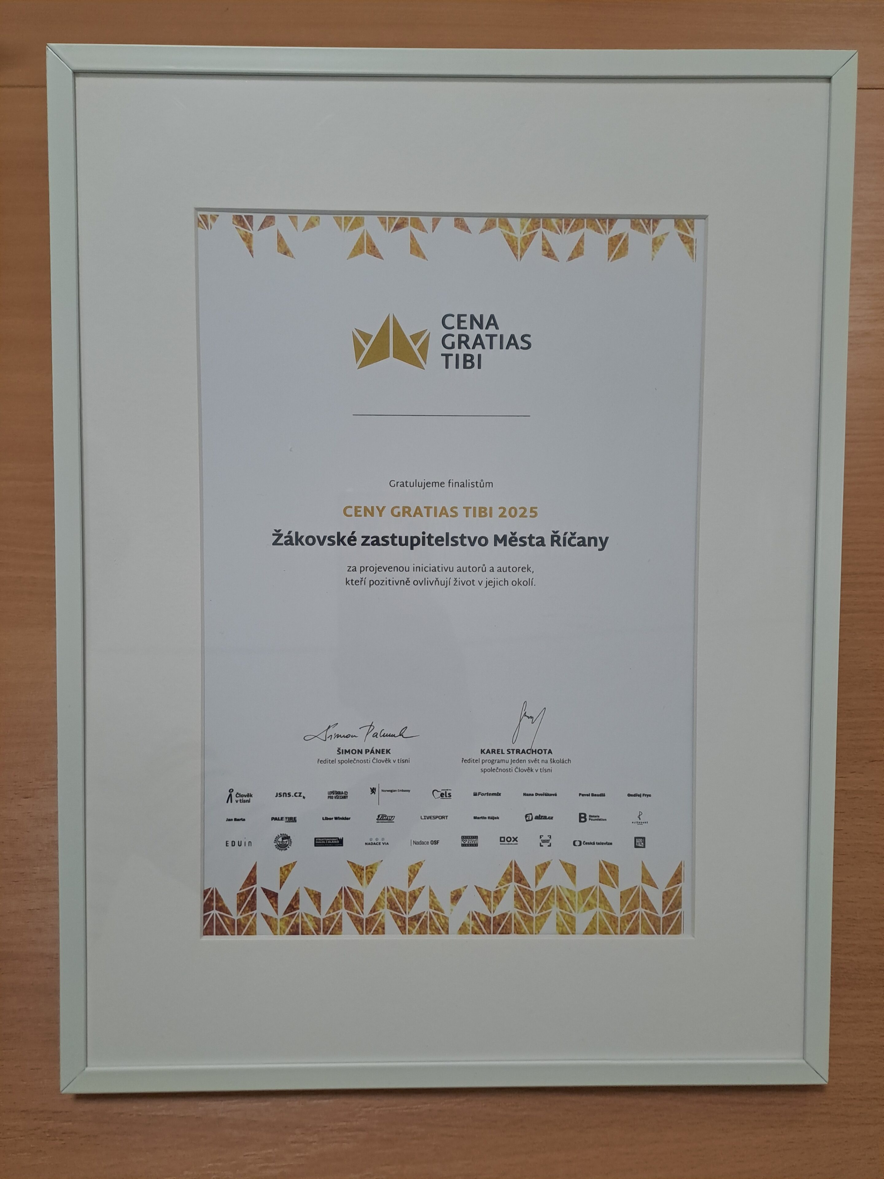 V roce 2025 se tým Žákovského zastupitelstva zúčastnil celorepublikové soutěže Gratias Tibi (pořádané společností Člověk v tísni). Z celkových 68 projektů z celé republiky byl tým ŽZ vybrán mezi 9 finalistů, v kategorii ZŠ mezi 3 finalisty.