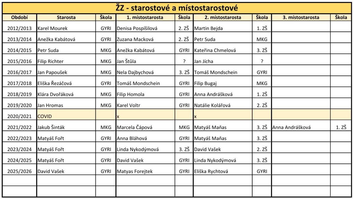 Pro volební období 2025/26 byli zvoleni následující žákovští zastupitelé:
