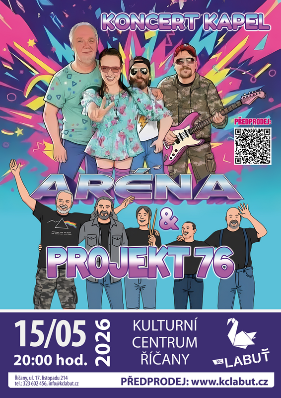 Aréna: Tento pop-rockový cover band z Říčanska se specializuje na největší světové hity jedné epochy Jejich vystoupení jsou inspirována érou televize MTV, čemuž dominuje symbolická skladba „Video Killed the Radio Star“ Kapela Vás zavede do doby, kdy byli Bon Jovi objevem a Madonna měla za sebou první klipy.